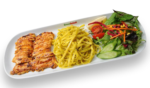 - 200-210 gr. Chicken breast, Special Sauce, Pasta, Salad Mix.